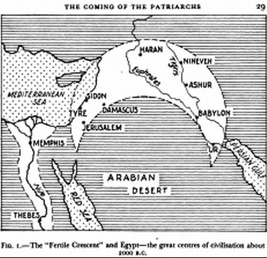27 Chapter 1 -- IN THE "FERTILE CRESCENT" -- 4,000 years ago - Continents asleep - The great cradle of our civilisation - Culture in the Ancient East - Staged Towers and Pyramids had been built long before - Giant plantations on the banks of canals - Arab tribes attack from the desert.