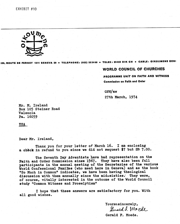 on Faith and Order -- GPM/aw, 27th March, 1974 - Gerald F. Moede.