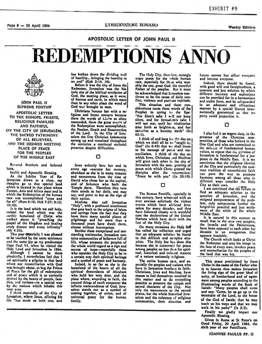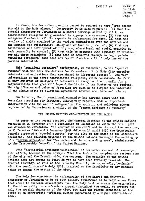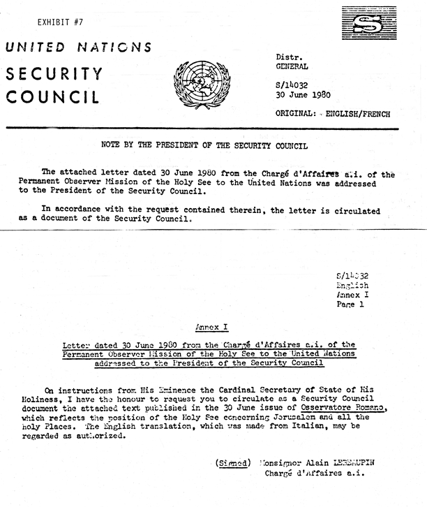 #7 - Document, UN Security Council: Papal Policy on Jerusalem