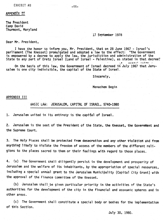 #8 - Basic Law of Israel Regarding Jerusalem