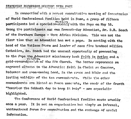 this audience between Pope Paul VI and Dr. B. B. Beach -
